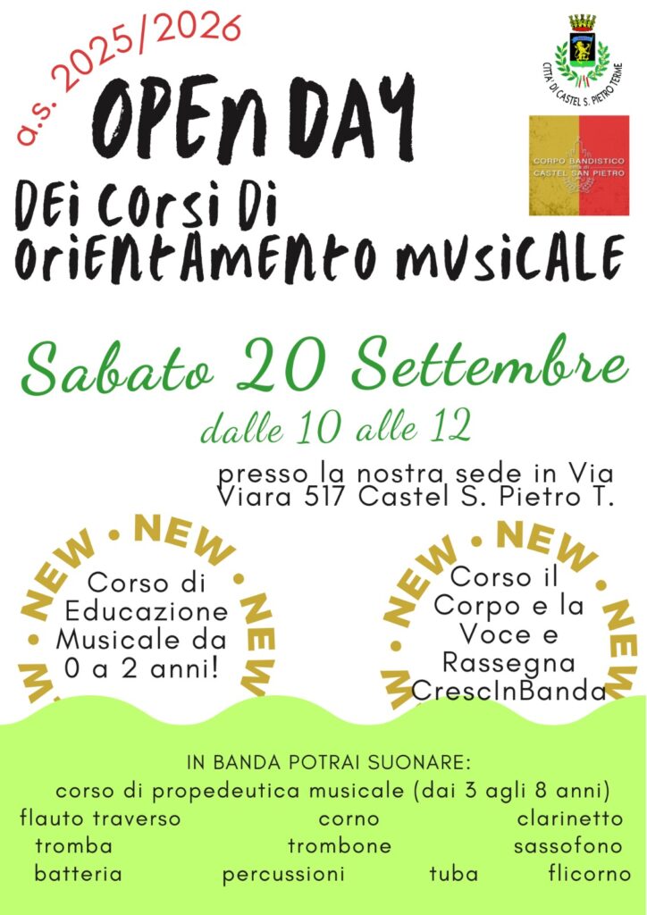 Open day virtuale della scuola di musica a Castel San Pietro