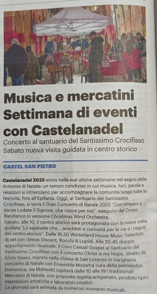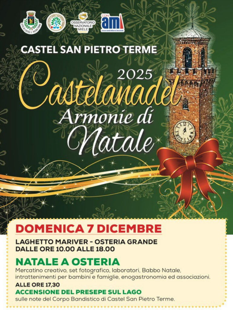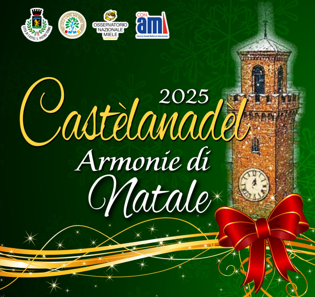 Come era stato nel 2024, anche quest’anno abbiamo avuto il piacere di accompagnare i castellani nelle settimane precedenti al Natale. Il tema di CastèlaNadèl 2025 è: “Armonie di Natale”, e vi lasciamo subito la splendida locandina preparata per l’occasione dal Comune di Castel San Pietro Terme…