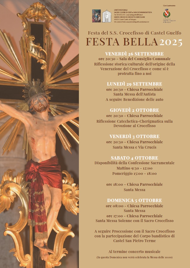 Il ritrovo per noi è alle 17:15 di fronte alla chiesa di Castel Guelfo: al termine della messa infatti animiamo la processione con il Sacro Crocifisso lungo le vie del paese in occasione della “Festa Bella 2025”.